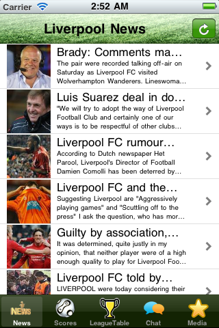 Liverpool Pro is a truly amazing App with all the information you could want including News, Liverpool Fixtures & Match reports, Live Scores, minute by minute match reporting, you can watch HD Sports News, chat with other Liverpool Fans (Powered by BBC chat 606) "amazing" This App also includes Premier League Fantasy Football and many more fantastic feature for the true Liverpool fan.