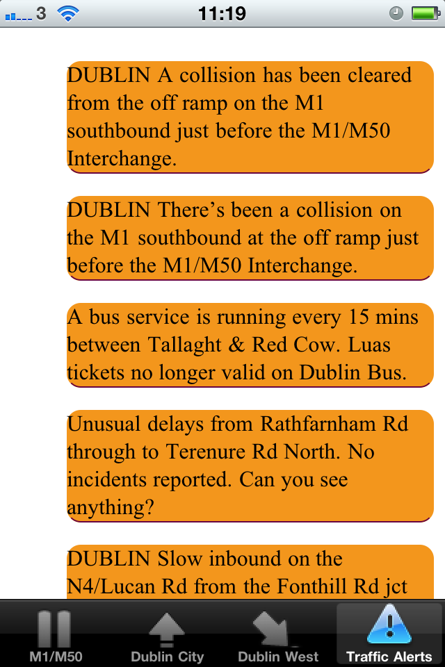 Traffic Jam Dublin gives you up to date views of the traffic congestion around Dublin and the M50/M1 areas, Thus enabling you to plan your route and avoid those long tail backs.